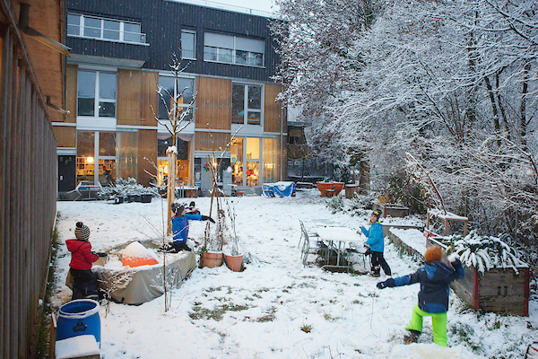 Die Genossenschaft FAB-A übernahm ein zentral gelegenes Grundstück in Biel im Baurecht von der Stadt. Am Fabrikgässli, einem ehemaligen Gewerbe-Standort, entstand eine autofreie Siedlung mit unterschiedlichen Wohnungstypen und Räumen. Der Bau umfasst 17 Wohnungen, drei Wohnateliers sowie gemeinschaftlich genutzte Räume. Hinzu kommen ein Multifunktionsraum, ein Gästezimmer und eine grosse Dachterrasse mit Waschpavillon. Der Neubau knüpft an die Vergangenheit des Standorts an. Wichtig war ressourcenschonendes Bauen, energieeffizienter Gebäudeunterhalt und ökologisches Verkehrsverhalten. Mitbewohnerinnen und Mitbewohner verzichten auf ein eigenes Auto und gestalten ihren Wohnraum mit. Das fördert die soziale Durchmischung und die Gemeinschaft.