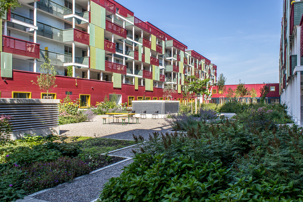 Direkt beim Eulachpark, inmitten des Zentrums Neu-Hegi in Oberwinterthur, befindet sich die autofreie Siedlung Giesserei. Das rund 131m auf 60m grosse, mehrheitlich rote Mehrgenerationenhaus, das bei seiner Entstehung als grösster europäischer Holzbau zählte, besteht aus zwei sechsgeschossigen Haupttrakten und zwei zweigeschossigen Zwischentrakten. Es bietet Platz zum Wohnen und Arbeiten für Menschen jeden Alters und jeder Lebensform. Die Genossenschaft für selbstverwaltetes Wohnen (Gesewo) hat mit der Giesserei, ihrer grössten Gewerbe- und Wohnsiedlung ,151 Wohnungen – 40 Wohntypen von klein bis gross – geschaffen. Die Atmosphäre mit dem grossen Innenhof, um den sich der Bau zieht, mutet offen an. Bei diesem Bauwerk auf dem Areal der ehemaligen Giesserei rückte die Genossenschaft hochwertige Architektur, ökologische Werte sowie soziale Aspekte in den Mittelpunkt. So gibt es vielerlei öffentliche Treffpunkte für den Austausch, wie ein Musikzentrum, eine Beiz, eine Bibliothek, einen Innenhof und weitläufige Grünflächen.