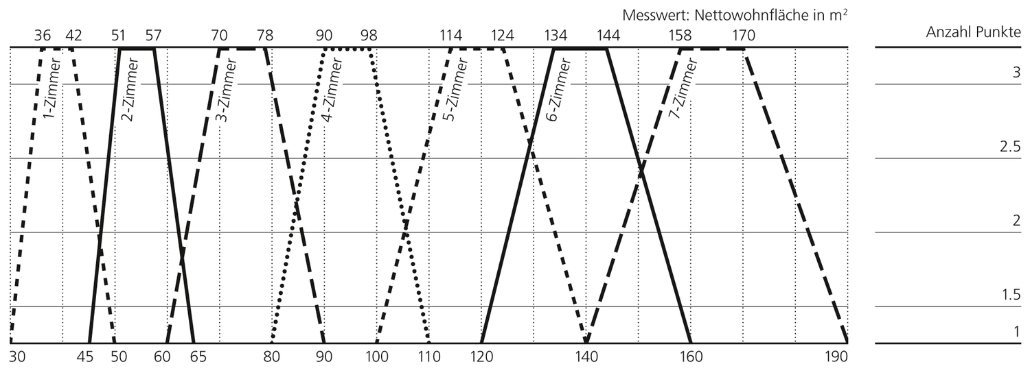 Hinweis: Werden bei der Quantität keine Punkte erreicht, muss mittels einer Innovation nachgewiesen werden, wie die fehlende, bzw. überdurchschnittliche Nettowohnfläche kompensiert wird. Erzielt die Innovation keinen Punkt, kann die Qualität nicht angerechnet werden.