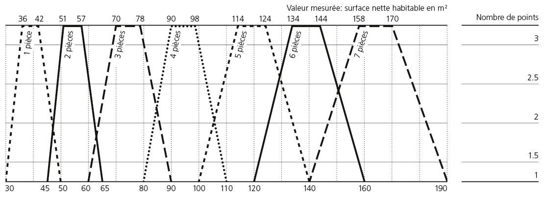 Remarque: Si aucun point n’est obtenu pour la quantité, il faut attester d’une innovation grâce à laquelle les équipements de base inférieurs ou supérieurs à la moyenne sont compensés. Si aucun point n’est atteint au titre de l’innovation, la qualité ne peut pas être comptabilisée.