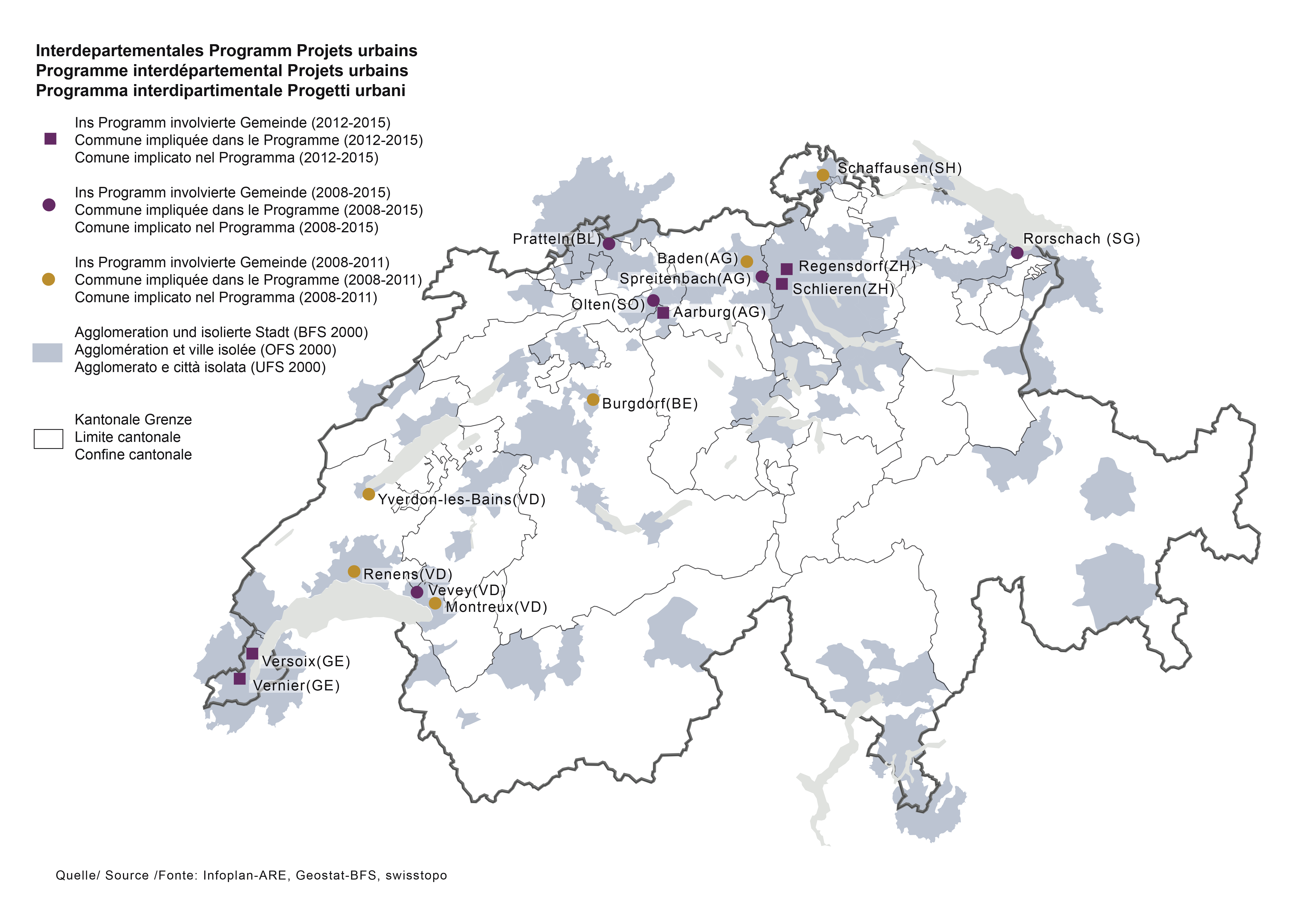 Le Programme Projets urbains a soutenu seize communes entre 2008 et 2015, qui ont développé des projets globaux et participatifs pour améliorer la qualité de vie et la cohésion sociale dans des quartiers existants.
