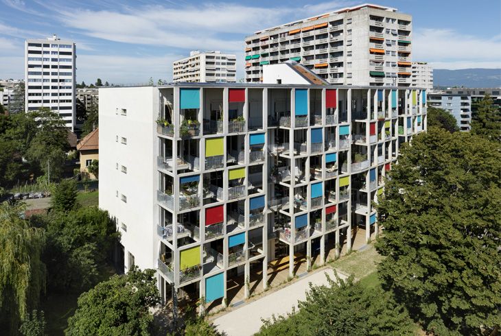 Les coopératives Equilibre et Luciole ont réalisé, dans le quartier genevois de la Servette, un immeuble de six étages avec 38 logements subventionnés par le canton, destinés à des personnes et à des familles à revenu modeste.