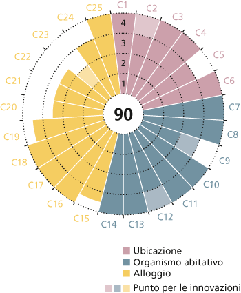 I servizi aggiuntivi dell’area residenziale sono molteplici e adattati ai ritmi di vita del quartiere circostante. L’accesso pubblico agli spazi viene regolato in funzione dell’utilizzo da parte dei diversi gruppi di utenti o dei singoli. Grazie a questi aspetti, unitamente alla flessibilità dei volumi, il complesso guadagna punti per l’innovazione. Un altro aspetto innovativo consiste nella dichiarazione di rinuncia all’utilizzo di un’auto per la durata del contratto di locazione. Il complesso di Kalkbreite è perfettamente raggiungibile con i trasporti pubblici. Con i fondi per la mobilità vengono inoltre finanziati abbonamenti generali impersonali. Le infrastrutture per le biciclette sono inoltre concepite per un’utilizzazione intensa. Con un apposito monitoraggio vengono studiate le scelte di mobilità degli inquilini. Il complesso abitativo è stato apprezzato anche per gli spazi pubblici polifunzione. Ne è un esempio l’ampia offerta di locali cucina: ve ne è uno in giardino, l’altro nella caffetteria e infine nel refettorio, dove lavora anche una cuoca. Innovativo è infine l’utilizzo pubblico e privato degli spazi esterni. La maggior parte degli alloggi non ne possiede di privati. In compenso, in aggiunta allo spazio urbano, l’area dispone di una terrazza paziosa in parte aperta al pubblico. L’impiego degli spazi esterni in un contesto urbano si dimostra essere una scelta coraggiosa che consente di intercalare varie modalità di sfruttamento degli spazi.