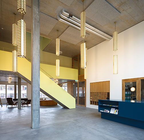 Dal punto di vista energetico ed ecologico, il complesso è stato concepito in linea con gli obiettivi della Società a 2000 watt e soddisfa lo standard Minergie-P-Eco. L’edificio di sette piani è stato realizzato con il metodo di costruzione ibrido ed è caratterizzato da una facciata in elementi lignei prefabbricati.
