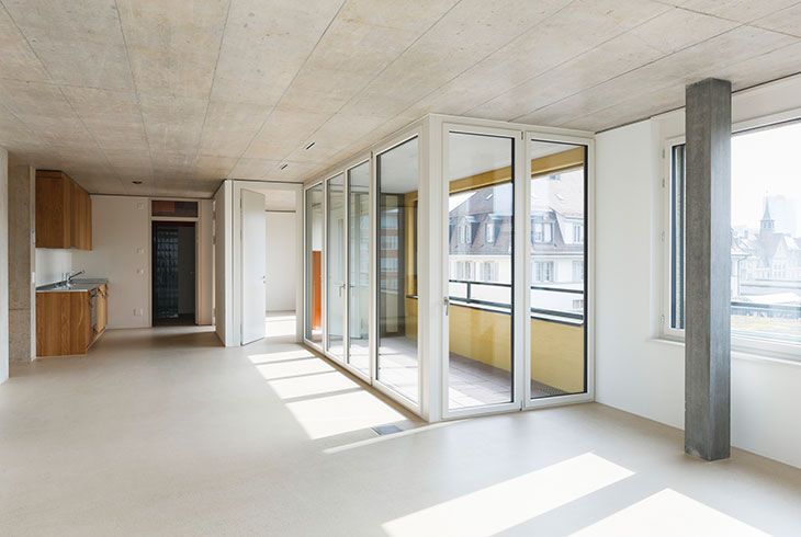 Con una cascata di accessi che collegano interno ed esterno, unita a tetti e terrazze percorribili e poste sopra il deposito dei tram, Kalkbreite offre per la maggior parte forme abitative nuove e flessibili.