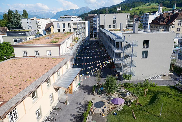 Nel centro di Kriens è stato edificato un nuovo quartiere abitativo: il Teiggi. Sull’area dell’ex pastificio di Kriens, la cooperativa Wohnwerk ha rinnovato due edifici e ne ha costruito tre nuovi. Ospitano 88 appartamenti, atelier abitativi e loft; a questi spazi si aggiungono superfici a uso comune e commerciale (25 atelier).