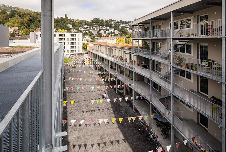 Gli appartamenti sono stati progettati pensando a tipologie abitative differenti, così da favorire la mescolanza sociale. Si va dai monolocali agli appartamenti di sei stanze per le famiglie, dagli alloggi in coabitazione ai cluster di grandi dimensioni. Gli alloggi sono stati concepiti cercando di mantenere la semplicità e sobrietà che caratterizzano quest’area, un tempo industriale, e che la rendono particolarmente interessante. Sono stati impiegati materiali robusti e a basso costo. Gli inquilini possono inoltre usufruire di una caffetteria, tre lavanderie, una terrazza sul tetto, un orto-giardino e un’officina, come pure di un locale ad uso comune. In un piccolo alloggio si possono accogliere per qualche tempo degli ospiti.
