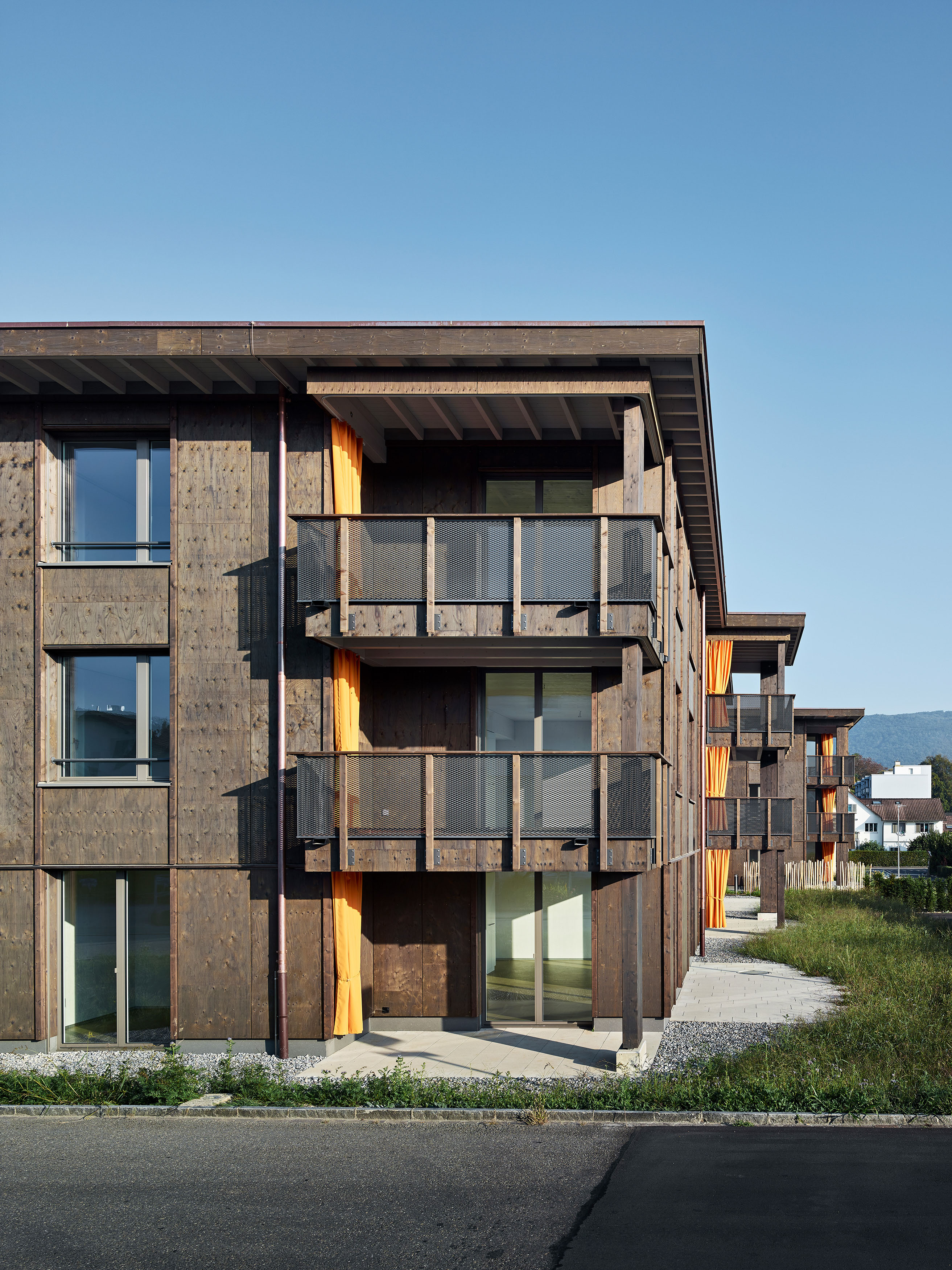 Il complesso residenziale Quellengarten, situato tra Pilatusstrasse e Grabenstrasse a Rohr presso Aarau, comprende 44 nuove abitazioni spaziose e accessibili in sedia a rotelle. La struttura portante e l’involucro esterno dell’insediamento a tre piani sono in materiali legnosi. Un unico tetto copre i singoli elementi che vengono così collegati a formare un insieme coerente. Gli edifici sono stati costruiti in conformità agli standard energetici Minergie-A-ECO e Minergie-P e sono provvisti dei relativi certificati. Sono inoltre dotati di un impianto fotovoltaico. Il legno da costruzione utilizzato è di origine locale o è stato importato da Paesi vicini oppure proviene da foreste gestite in maniera responsabile certificate FSC.